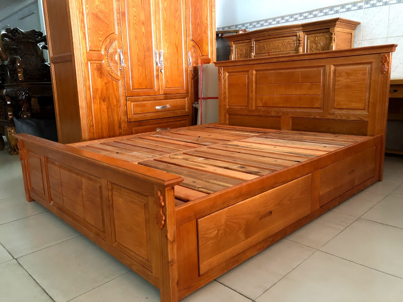 Giường ngủ gỗ xoan 2 hộc ngăn kéo tiện dụng