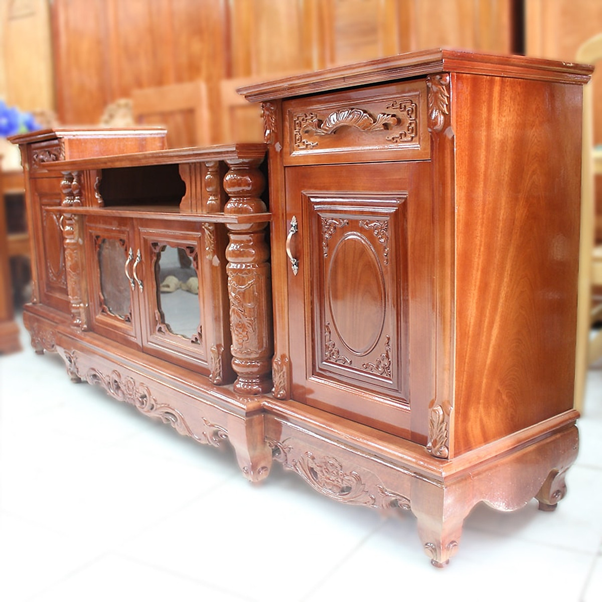 Kệ Tivi Cột Nho Gỗ Xoan Đào 2m4, thiết kế hài hòa phù hợp với không gian nội thất hiện đại, sang trọng K-JyK